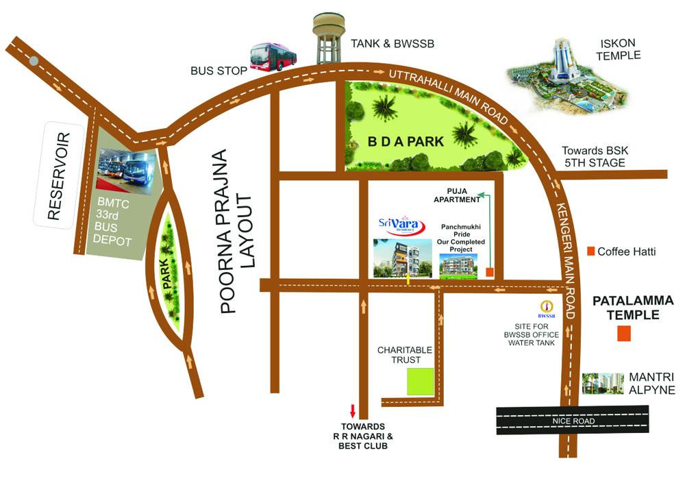 Sri Vara Residency Is a BBMP Approved 2 & 3 BHK Residential Apartment located at Poornaprajna Layout, Ittumadhu of Uttarahalli.
