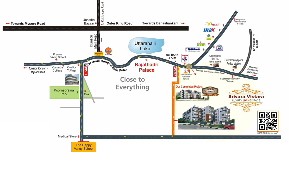 A BBMP Approved well planned 2/3 BHK Residential Apartments Complex located at Poornaprajna Layout, off Uttarahalli Main Road, “Srivara Vistara” is designed as the perfect place for modern living. Combining quality and value with attention to detail and contemporary design, “Srivara Vistara” is a striking architectural development of 76 units in 1 Block.